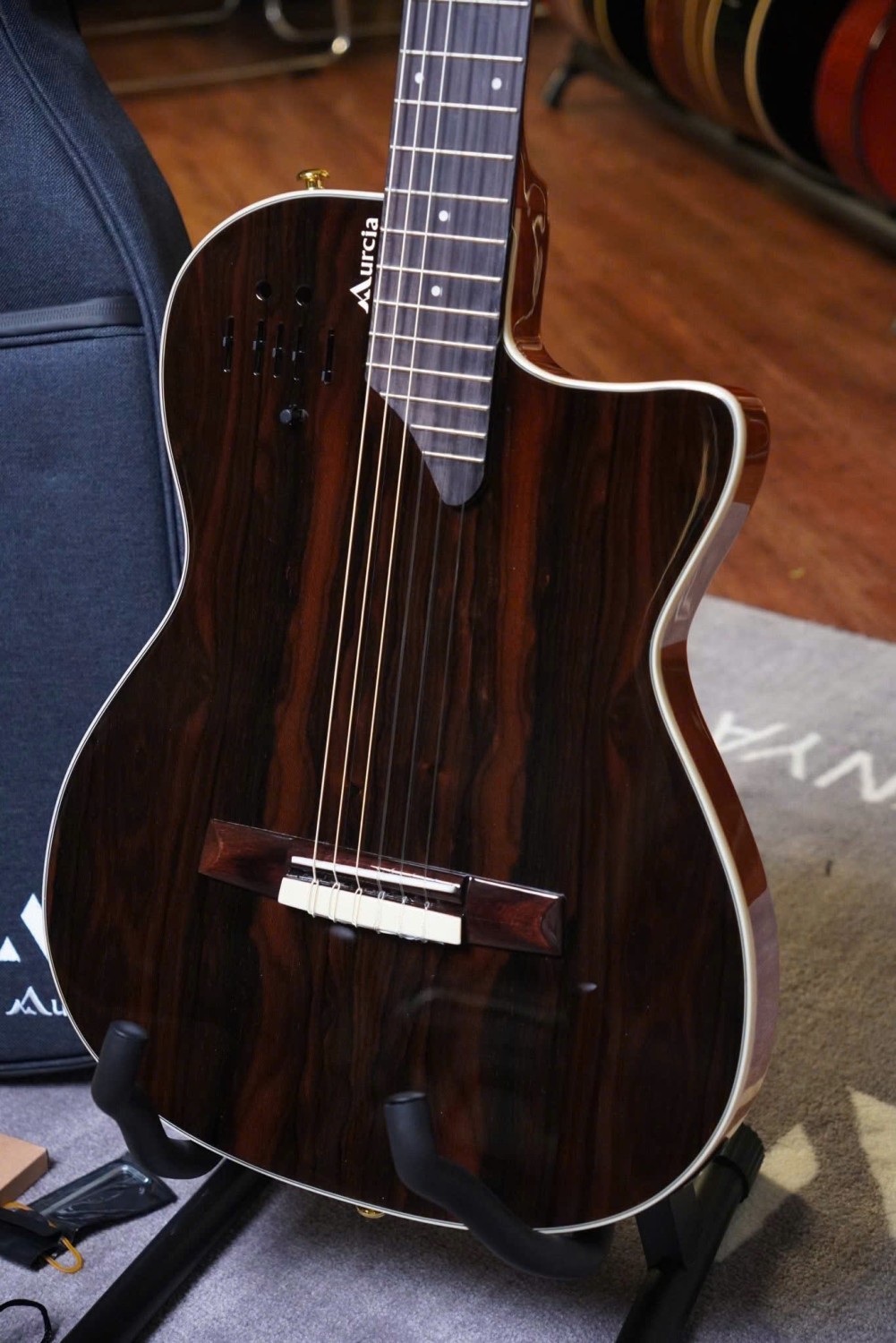 Lưng và hông: Gỗ mahogany nguyên tấm tăng cường độ ấm và chiều sâu âm thanh
